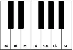 - Grupos de duas pretas: Dó# (ou Réb) e Ré# (ou Mib).
